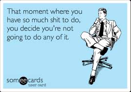 I’m sitting at a blank screen and there’s all this stuff that I need to transfer from my brain to the page, but there’s so much stuff that I don’t feel like doing it. This picture pretty much sums it up…